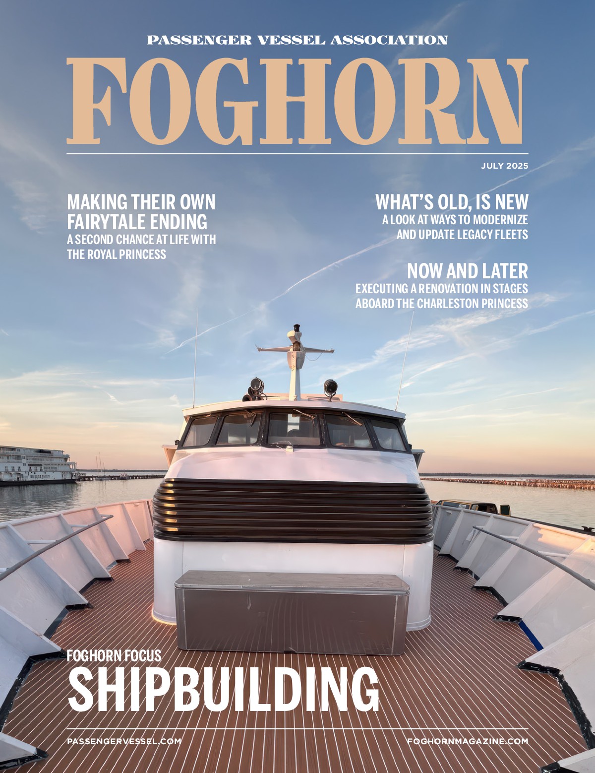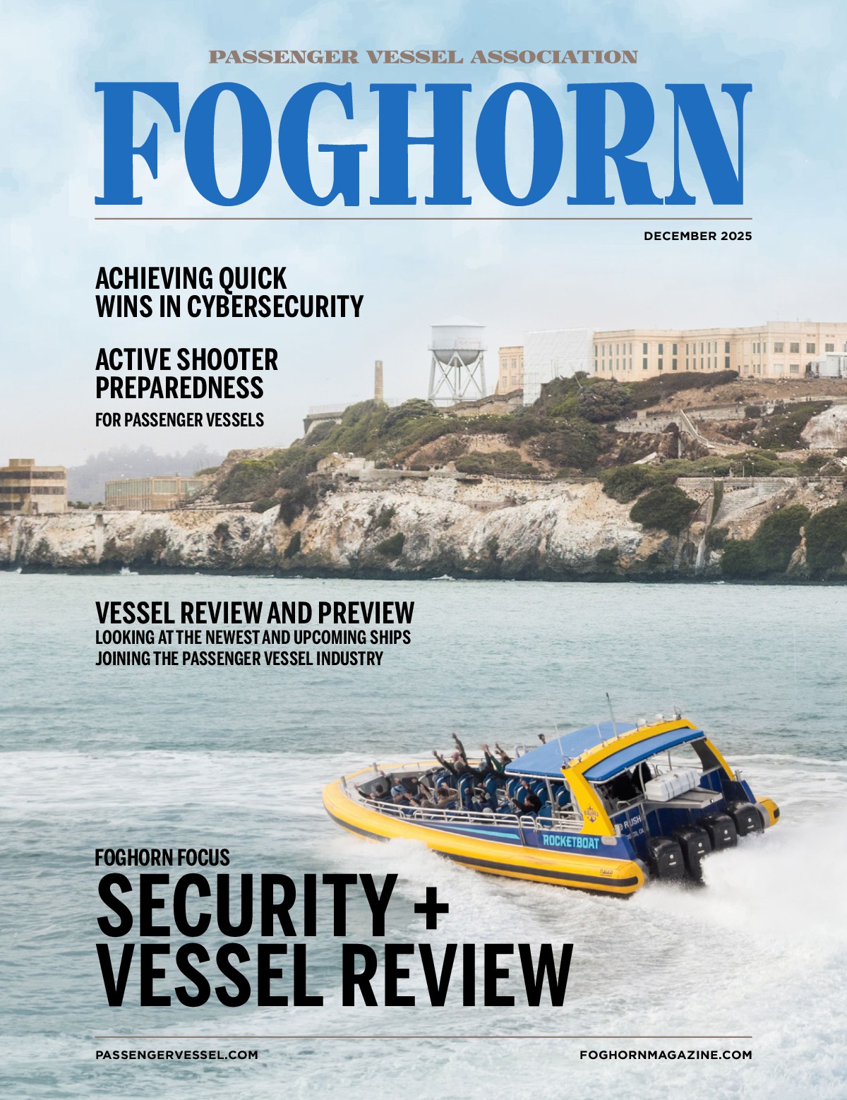 Each issue of FOGHORN contains articles and reports about issues of importance to those in the passenger vessel industry. Editorial covers marketing and sales, shipbuilding, technology, marine operations, safety, security, legislative and regulatory matters and much more.